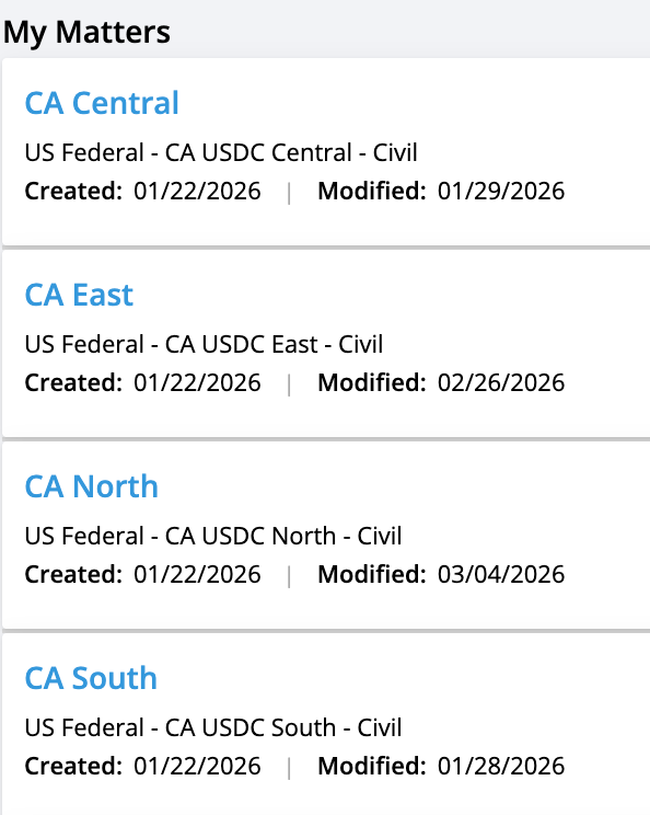 | US Federal - CA USDC East (Judge Kimberly J. Mueller) |