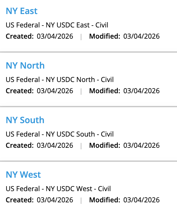 | US Federal - NY USDC East (Judge Raymond J. Dearie) |